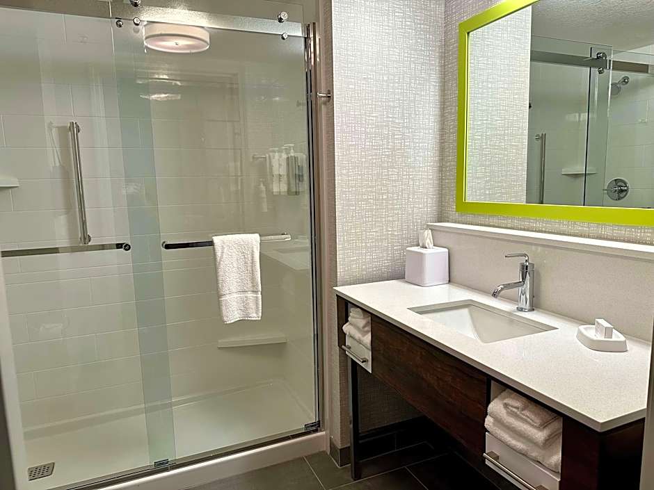 A spa bath is featured in this studio. A microwave a petite refrigerator is offered.